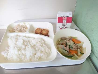 中華煮は肉と野菜がたっぷり。しっかりした味付けです。ごはんが進みます。