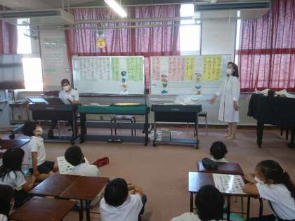 4年 食に関する指導(音楽) 公開日 2022/06/30 更新日 2022/06/30 その他 今日の食育の授業は音楽とのコラボです。 栄養3食について、赤黄緑それぞれの食品を選び、オリジナルの歌を作りました。 みんな楽しそうに歌い、自然に頭に入ったようでした。 いいね(0)