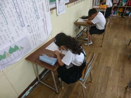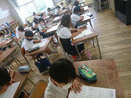 今日は2年生以上が漢字チャレンジに取り組んでいます。 みんな合格を目指して集中していました。