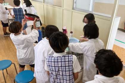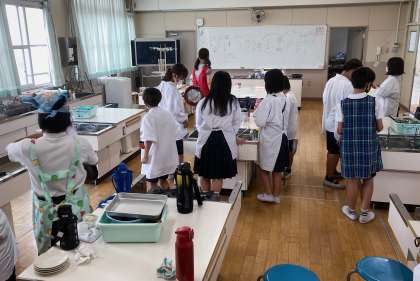 家庭科の先生の話をよく聞き、野菜炒めにチャレンジ。