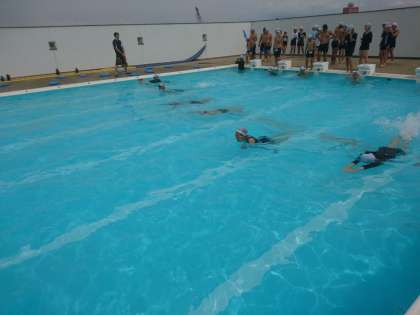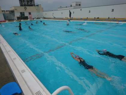 高学年は平泳ぎにも挑戦しています。 手と足のバランスが難しいのですが、みんながんばっています!
