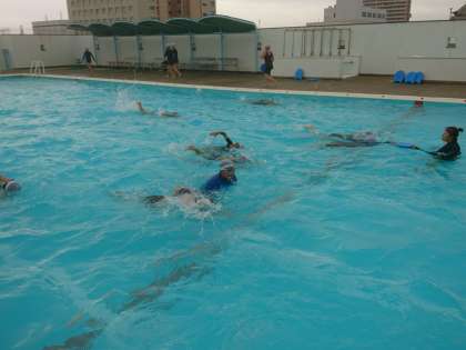 今日も雨模様でしたが、雨の止んだ時間はプールに入ることができました。