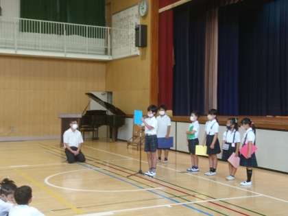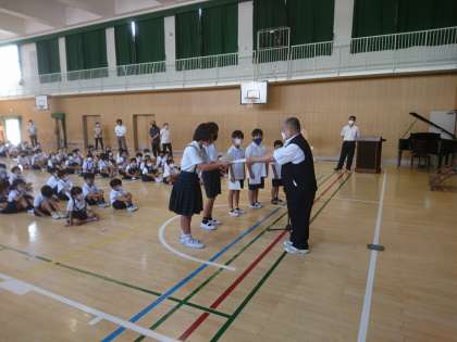 終業式 公開日 2022/07/20 更新日 2022/07/20 その他 今日は1学期の終業式。 まず、代表児童が一学期にがんばったことや、二学期にがんばりたいことを発表しました。 次に、つるまち漢字・計算チャレンジに合格した児童の代表に、認定証を渡しました。 これから長い夏休みです。 しっかり楽しみながら、何か目標を決めてがんばってほしいと思います。 いいね(0)