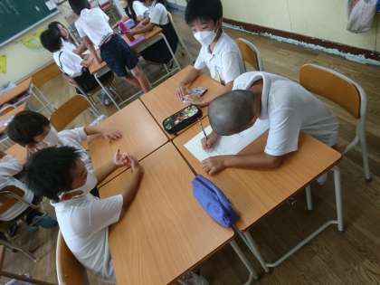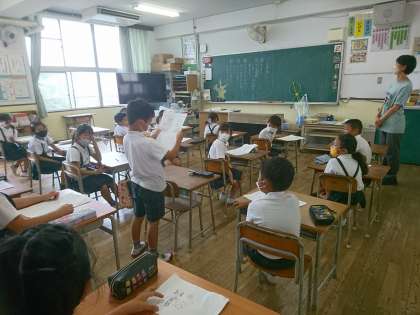 夏休みの思い出を発表したり、2学期の係りを決めたりしていました。 子どもたちの元気な表情が見られました。