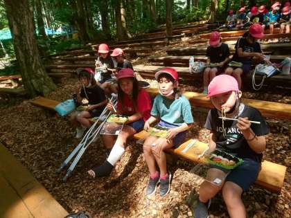 初めてのごはんはお弁当です。 これからの活動に向けて、しっかりエネルギーをたくわえます。