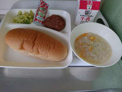 やきハンバーグは、そのままでも美味しく、ケチャップをつけてパンとの相性もばっちりです。