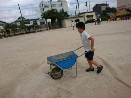 本校の運動場は非常に水はけが良いのですが、何ヵ所かいつも水がたまってしまうところがあります。