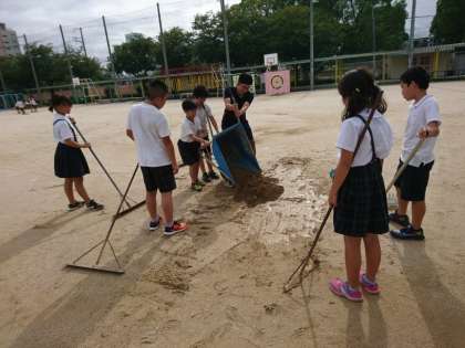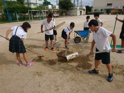 今日は運動委員会の子どもたちが土を入れ、整備してくれました。