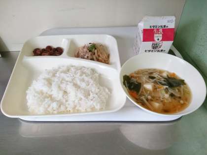 みそ汁は豆腐などの具材がたっぷりで満足感があります。