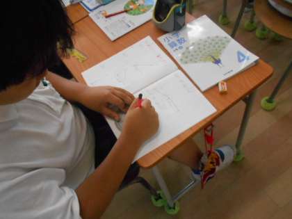 だんだん慣れてきた様子で、角度を測って線をかくことができました。