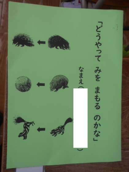 1年2組では国語科「どうやって みを まもるのかな」で使ったプリントを綴じるファイルを作っていました。がんばった学習の記録、しっかり残してほしいです。