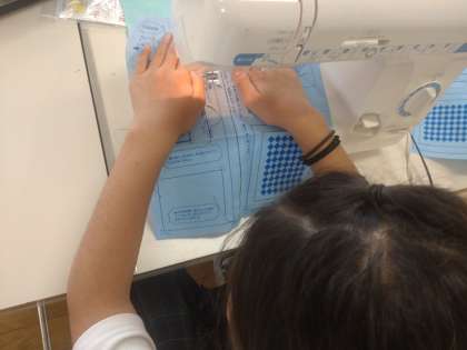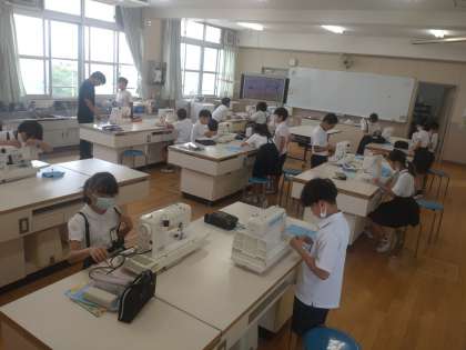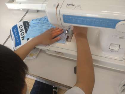 5年2組では家庭科の時間に、ミシン縫いの練習に取り組んでいました。上糸・下糸をセットするのに一苦労でした。そして、練習布でミシン縫いの練習がいよいよ始まりました。