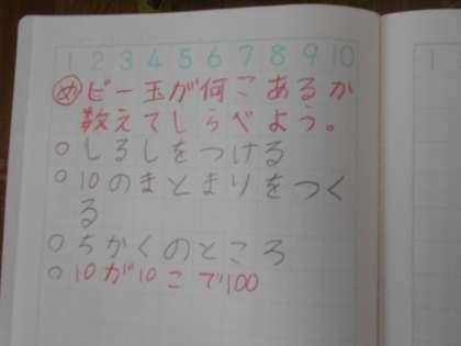 100より大きい数 公開日 2023/06/14 更新日 2023/06/14 お知らせ 2年生は算数科「100より 大きい かずを あらわそう」を学習しています。次のように、たくさんあるビー玉を数えます。数えるときに「印をつける」「10のまとまりごとに〇で囲む」など、実践的な案がいくつも出されました。 いいね(0)