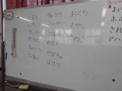 1年2組では音楽科の時間に野菜の名前について出し合っていました。なかなか思いつかないものです。