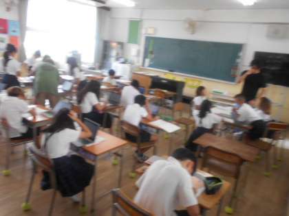 みんなで新聞を作ろう 公開日 2023/06/20 更新日 2023/06/20 お知らせ 4年2組では国語科「みんなで新聞を作ろう」に取り組んでいます。まずは個人で記事を作ります。タブレットや本で調べて、ノートにメモしていきました。 次は、班になって新聞作りスタートです。まず長いものさしで、模造紙を区切っていました。 いいね(0)