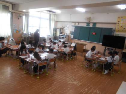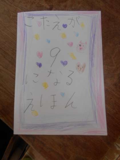こたえが( )になる えほん 公開日 2023/06/20 更新日 2023/06/20 お知らせ 1年2組では「こたえが( )になる えほん」を作っていました。例えば、表紙に「答えが8になる絵本」と書いてあれば、絵本を開くと「トマトが5個」「きゅうりが3個」の絵が描かれています。みんな素敵な絵本を作った後は、前に出て発表会をしていました。 いいね(0)