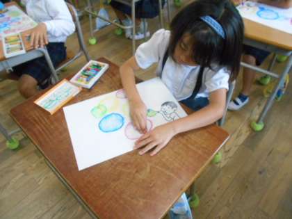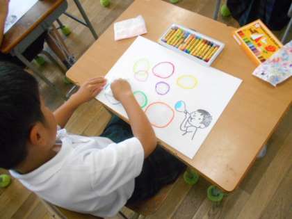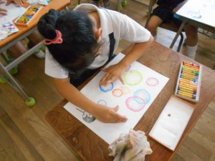 2年図工 公開日 2023/06/27 更新日 2023/06/27 その他 「ふしぎなシャボン玉」 クレパスで○を描き、指やティッシュを使って色をのばすと、とてもきれいなシャボン玉の模様ができました。 使う材料は同じでも、色づかいや配置によって、一人ひとりの個性が表れた作品になりますね。 いいね(0)