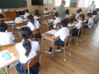 4年生は「音読」と「視写」、5年生は「音読」と「なぞり形式の視写」、6年生は「テーマに沿った作文(テーマは『大むかしの世界』)」をしました。