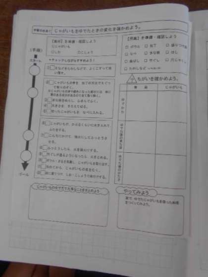ゆでいも・ゆでキャベツ 公開日 2023/07/05 更新日 2023/07/05 5年 5年2組では家庭科で、「茹でいも」や「茹でキャベツ」の調理の仕方について学習していました。先生からは、いもとキャベツ、2種類の野菜を茹でなければならず、前回料理した「ほうれん草のおひたし」とは比べものにならないくらい大変なようです。グループで力を合わせて乗り越えてほしいです。 いいね(0)