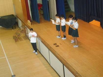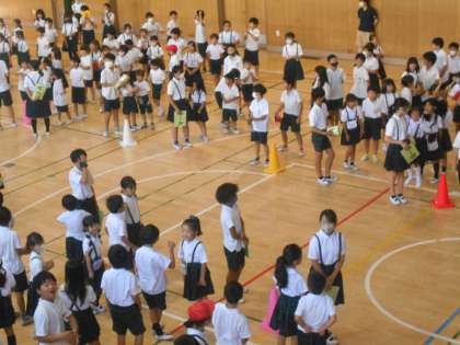今日の集会は「先生あてクイズ」です。 先生に関する問題は、子どもたちも喜びながら答えていました。