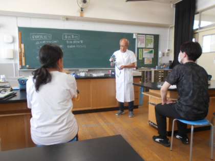 週に1回、主に理科の支援に来ていただいている先生に、教員向けの研修をしていただきました。