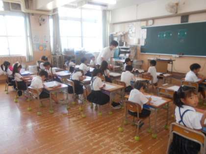 「ノ」 公開日 2023/07/07 更新日 2023/07/07 2年 1年2組では国語科の時間に、かたかな「ノ」を習っていました。右上から左下へ1画で「はらう」だけで書けるので簡単なようです。それでも油断せず、「はらう」角度に気をつけながら練習していました。 いいね(0)