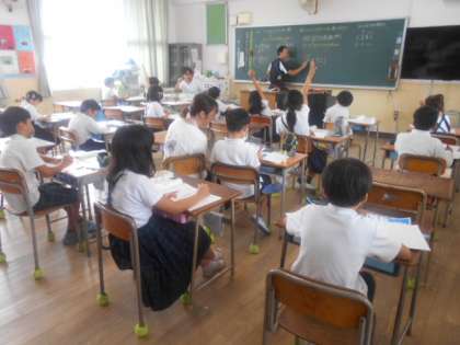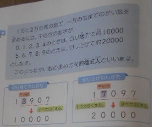 「1万の位までの概数」と「上から2けたの概数」 公開日 2023/07/10 更新日 2023/07/10 4年 4年2組では算数科で、「上から2けたの概数」の仕方について考えていました。前時では「1万の位までの概数」は千の位を四捨五入することを学びました。上から2けたの概数にするときには、どこを四捨五入すればいいのか、一所懸命考えていました。 いいね(0)