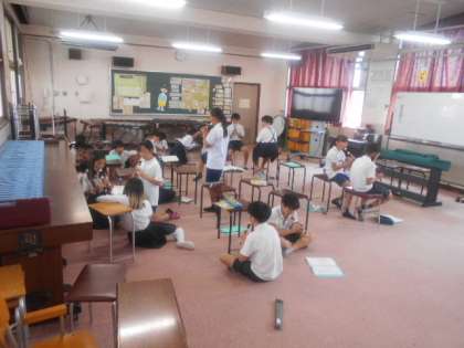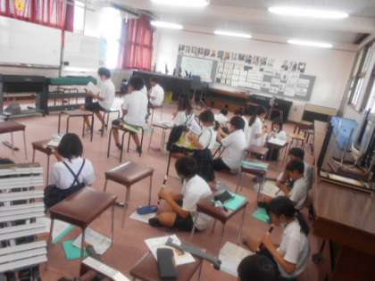 5年2組は音楽科の時間に、各自で楽器の個人練習をしていました。リコーダーの音の響き合いを感じながら演奏する「小さな約束」や、YOASOBIの「アイドル」を練習していました。「アイドル」は歌うのも難しいので、リコーダー演奏はさらに難しいでしょうか。がんばってほしいです。