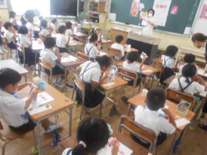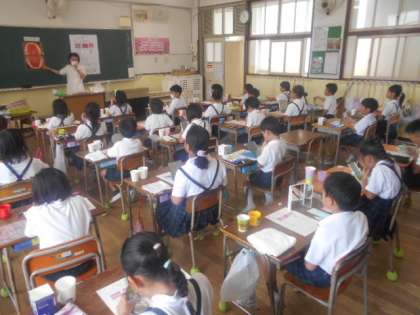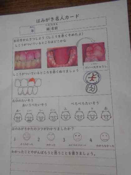 歯みがき指導(2年) 公開日 2023/07/12 更新日 2023/07/12 2年 7月12日(水)3時限目に歯科衛生士の先生を講師にお招きして、2年生で「歯みがき指導」を実施しました。虫歯の原因は「歯垢(しこう)」なので、歯みがきで大事なのは歯垢を落とすことを学びました。また、磨く場所によって磨き方も変わることを教わり、磨き方の練習をしました。 いいね(0)