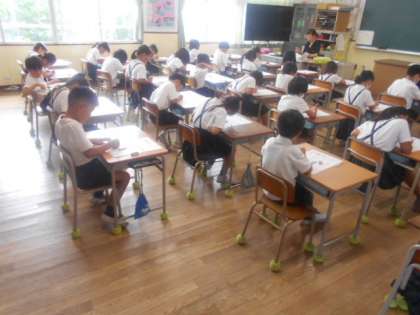 2年生は算数科「たし算とひき算の筆算」テストに取り組んでいました。くり上がりやくり下がりがないか筆算を確かめて、計算の手順を間違えないように赤鉛筆で書き込んで確かめながら計算していました。計算の仕方を確実に身に着けて、夏休みを迎えてほしいです。