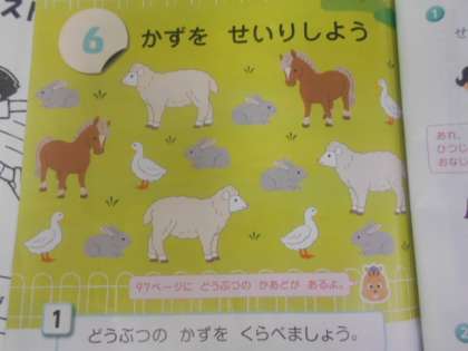 かずを せいりしよう 公開日 2023/07/14 更新日 2023/07/14 1年 1年1組では算数科「かずを せいりしよう」を学習しています。次のような絵を見て、どの動物がどれだけ多いのかを数えますが、動物の位置がばらばらで数えにくそうです。そこで、各動物の数を比べやすいように並べます。そのように並べたらいいでしょうか。 ※学習している全体の写真を撮影できていませんでした。誠に申し訳ありません。 いいね(0)