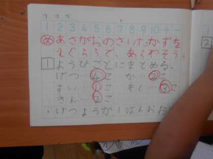 えぐらふで あらわそう 公開日 2023/07/18 更新日 2023/07/18 1年 1年2組は算数科に時間に、アサガオの花が咲いた数を色ごとに分類して「絵グラフ」に表していました。前時には、曜日ごとに花が咲いた数を分類していました。前時の学習を思い出して、今度は「青・赤・紫」にうまく分けられたでしょうか。 いいね(0)