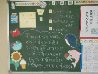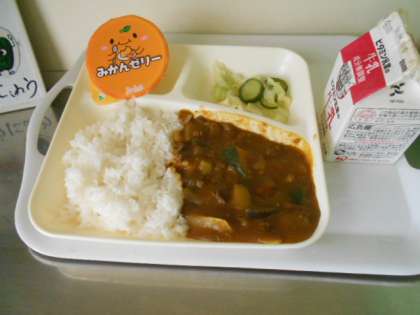 みかんゼリーは、つるんとした食感です。ひんやりしていておいしく、1学期をしめくくるのにふさわしいデザートでした。