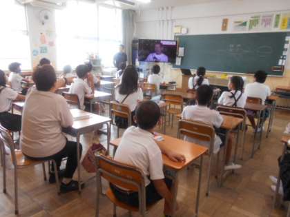 6年生では、授業の始まりに、杉本先生から「夏休みに花火を見に行ったお話」がありました。その様子を報道したニュースを観てみると、なんと杉本先生がインタビューされていて、学級みんなで大変びっくりしました。