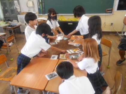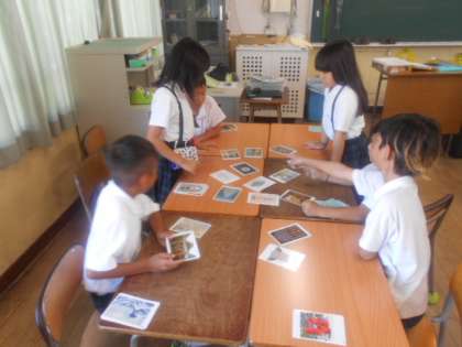 アート・カード 公開日 2023/08/29 更新日 2023/08/29 4年 4年2組では図画工作科の時間に、いろいろな芸術絵画のカードを使って、マッチング・ゲームをしていました。班で相談しながら、絵画の共通点を見つけてグループ分けします。共通する項目は、主題・技法・形や色・材料などがあります。子どもたちは、多様な視点を考えて話し合っていました。 いいね(0)