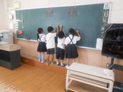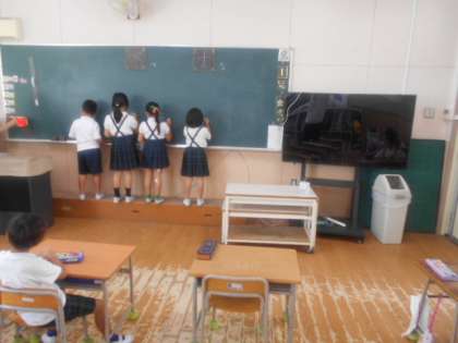 「ナ」「ペ」 公開日 2023/09/01 更新日 2023/09/01 1年 1年1組では国語科の時間にカタカナ「ナ」「ペ」を習っていました。「『ナ』は、1画目が中央から降りてきて微妙に左はらい」「『ぺ』は、1画目が微妙な角度で曲がる山折り」に気をつけます。1班ずつ前に出て黒板に書いていきます。うまく書けたでしょうか。 いいね(0)