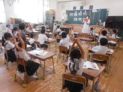 1年1組では道徳科「にっぽんの おかし」に取り組んでいました。私は、和菓子のお土産を買って、おばあちゃんの家へ行くことになりました。お店にはいろいろな和菓子が並んでいます。私は、金魚のお菓子を見て、お店の方からお菓子に込めた思いを聞かせてもらいました。