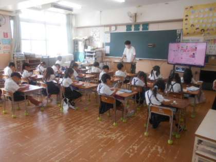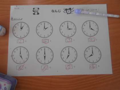 なんじ なんじはん 公開日 2023/09/15 更新日 2023/09/15 1年 1年2組では算数科「なんじ なんじはん」を学習しています。練習プリントに書かれている時計を見て、時刻を答えます。長い針と短い針がどこを指すのか、しっかり見極めて答えていました。 いいね(0)