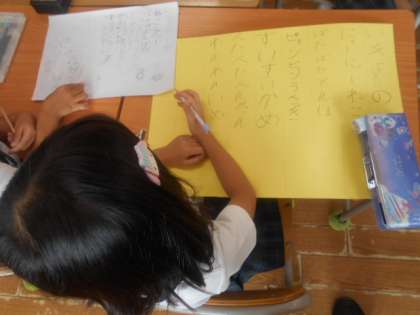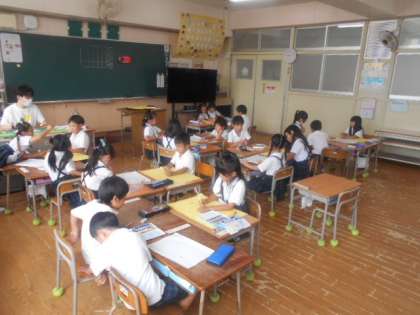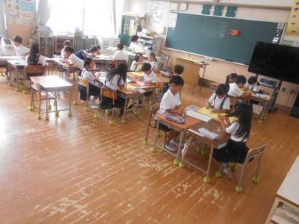 たべもの 公開日 2023/09/20 更新日 2023/09/20 1年 1年生では国語科で「たべもの」を学習しています。この詩では、さつまいもを「ほこほこ」、だいこんを「ほりほり」と、食べ物を擬態語や擬音語で表しています。2組では、「いきもの」や「ともだち」などの題をつけて、グループで話し合って、詩を考えていました。 いいね(0)