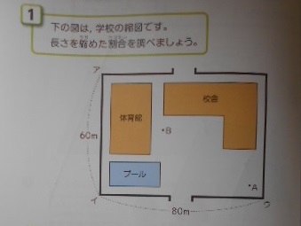 縮図と縮尺 公開日 2023/10/05 更新日 2023/10/05 6年 6年生では算数科の時間に「縮図と縮尺」について学習していました。次のような学校の縮図を見て、縮められた割合を求めます。この割合(縮尺)は「1:1000」とわかりました。縮図から実際の長さが求められますが、「5cm×1000⇒5000cm⇒□m」単位の換算に気をつけてほしいです。 いいね(0)
