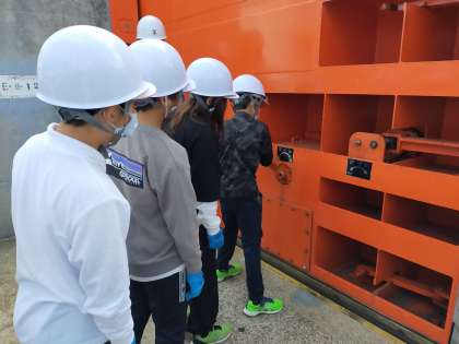 5年社会見学2 公開日 2023/10/12 更新日 2023/10/12 その他 港湾局内の見学をしています。 本物の防潮扉を見せていただいています。 ボタンで動かしますが、停電時はハンドルを回して動かすそうです。 防潮扉の重さは10トン。 実際に押して動かすのはとても大変ですが、ハンドルだと軽く回して動かすことができます。 いいね(0)