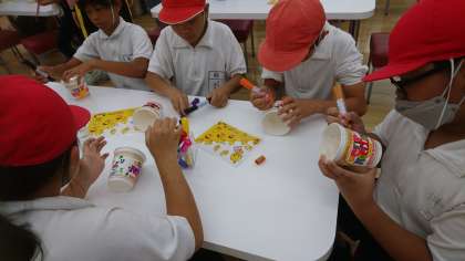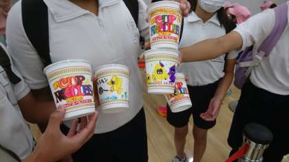 カップに絵を描いて、世界に1つのマイカップが完成しました。
