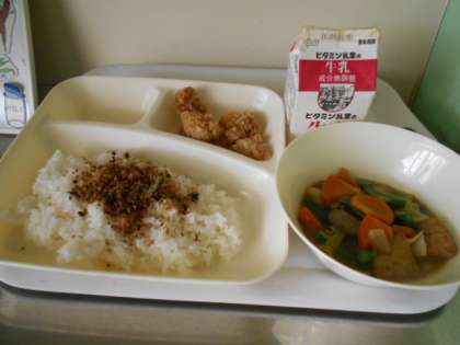 あつあげと野菜の煮物は、甘めの味付けがごはんとよく合います。