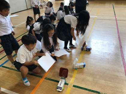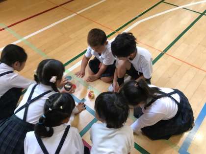 1・2年がお互いに楽しく遊ぶ約束をして、それぞれのグループに分かれて、遊びが始まりました。