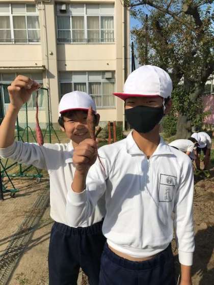 低学年は可愛らしい芋掘りでしたが、やはり6年生は力強い芋掘りでした。頼もしいです。