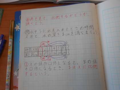 比例と反比例 公開日 2023/11/01 更新日 2023/11/01 6年 6年生は算数科「比例と反比例」について学習していきます。次のような表を見て、比例するかを確認しました。似たような内容は、5年生の時に習ったようです。 先生から6年生で習う内容の違いは、「x」「y」の文字が入ったことだと説明がありました。文字が入っても惑わされずに学習してほしいです いいね(0)