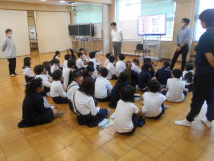 I like blue.1 公開日 2023/11/01 更新日 2023/11/01 3年 3年生は外国語活動「I like blue.」に取り組んでいました。まずは、先生から「How are you?」と尋ねられ「fine.」など自分の状態を答えます。「sleepy.」と答える児童もいました。 次は、先生から「What collar you like?」と尋ねられます。「I like 〇〇.」正しく答えられたでしょうか。 いいね(0)
