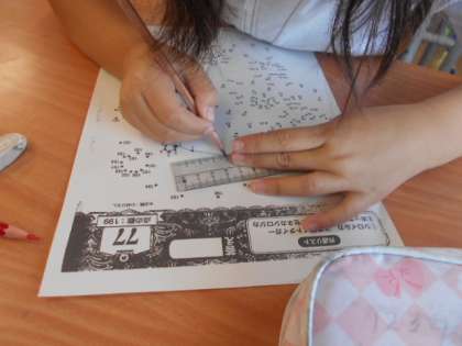 4枚のプリントが終わったら、ご褒美で線つなぎプリントに取り組みます。