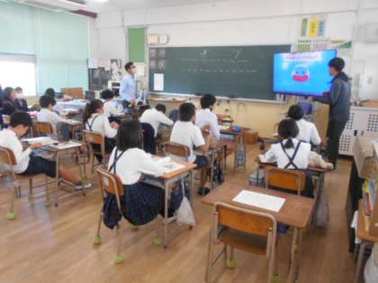He can play △△ , but he can’t play 〇〇. 公開日 2023/11/08 更新日 2023/11/08 5年 5年2組では、英語科「He can play △△ , but he can’t play 〇〇.」について取り組んでいました。大型テレビから流れる英語の歌を聴いて、相手は何ができて、何ができないのかを答えます。うまくヒアリングできると映像から「That’s great.」とほめてもらえます。 いいね(0)