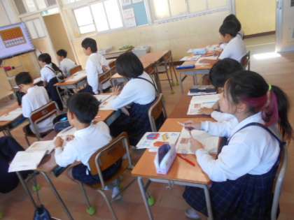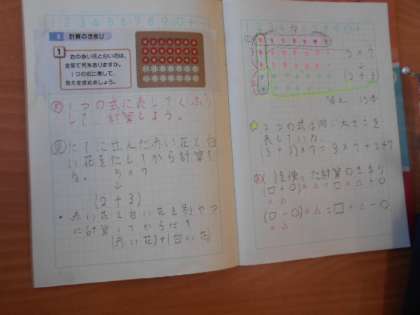 計算のきまり 公開日 2023/11/09 更新日 2023/11/09 4年 4年1組では算数科の時間に計算のきまりについて学習していました。「3×7+2×7」と「(3+2)×7」を比べて、どこが違うのか、そして、等しい答えになることを確認していました。この計算のきまりを活かして、複雑な計算が少しでも楽になるようにがんばってほしいです。 いいね(0)